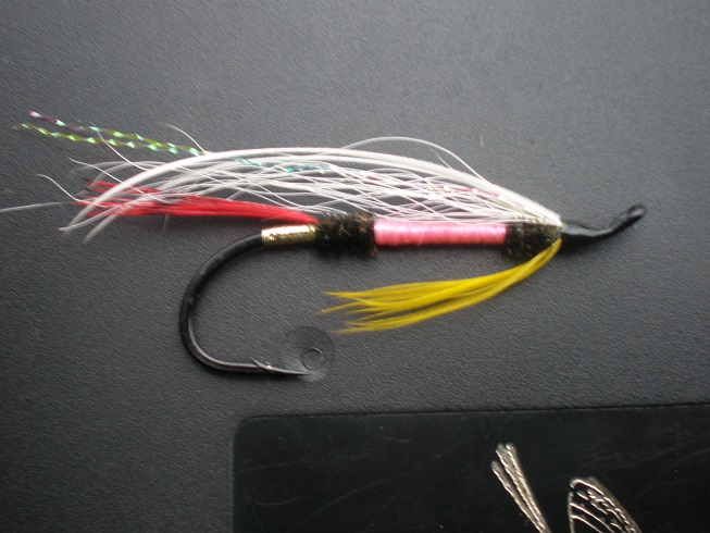 1. Lõheputukate klassikas puudub roosa ...seega on see roosa (hot pink) uuema aja sidujate mängumaa.Putuk on mõeldud kevadistele tulvavetele ,vesi üle kallaste , sogane , vihma sajab nagu oavarrest. Ühesõnaga minu lemmikilm kalale minekuks.Sidusin algselt pruuni kurguga ....ei toiminud nii nagu vaja. Loogika järgi külma ja sogasesse vette oleks vaja kontrasti ....vahetasin kurgu tibukollaseks ...ja toimib.On püüdnud ka suvistes ja sügisestes tulvavetes , aga mitte nii eduliselt.