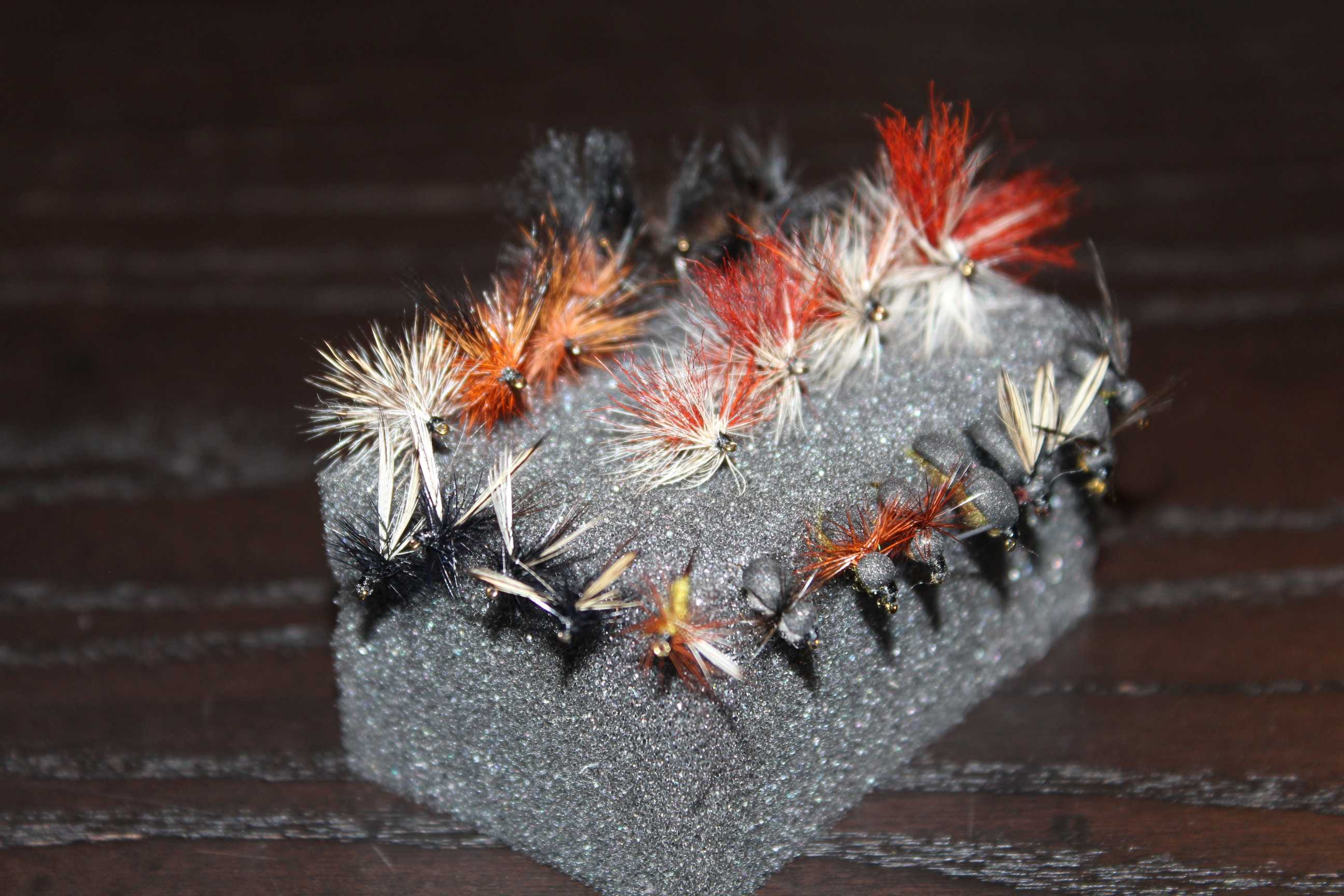 Tuleb sidumismaterjalid välja otsida ja hakata aega võtma... Plaan juulis nina põhjapoole sättida, seekord vahelduseks forell-paalia-harjus. Hakkasin vaikselt pinnakatega pihta. Mõned Nalle Puhhi versioonid, Black Dunnid, Murkkud ja muud sipelgad, Europa-12... ja nende variatsioonid. Sepaga olen vist ühel lainel olnud, tegin ka mõned sipelgad ja mõtlesin tuumaroosa peale. Roosa jäi veel tegemata, kuna roosa foam oli Andreil otsas.