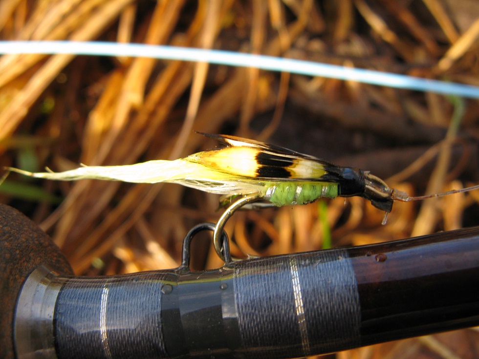 Tore vaadata kes käis kalal, ise tõbine.Tuli tegeleda treeninguda siis , teisel katsel õnnestus selline asi. 10s konks, kere hõbe mylar ,keere kuld,alustiib orava saba, tiib marabouja pea värvitud hirv.