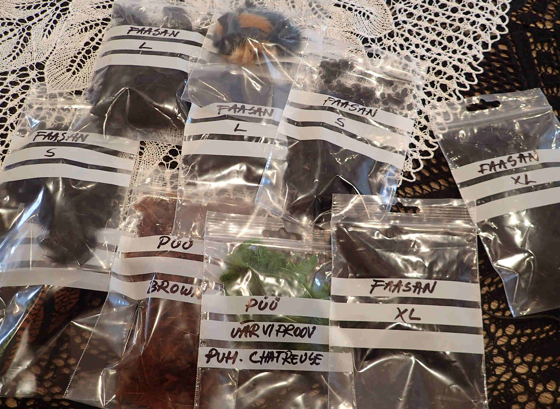 Vist on niipidi , et kukega teeb enam-vähem kõik , kanaga pinnakaid on kahtlane.Kana sule fiiber on lihtsalt pehmem .Kana sulega suvised uppuvad ja liitsid , lõheputukad tunduvad jälle paremad . Alguses on vaja jah kõike kokku osta , palju seda kõike vaja on selgub hiljem. Kas hakkad siduma 50 ...100 või kogunisti 1000 putukat aastas , seda ei tea sa ise ka. Kvaliteet ... see on see , mille eest saab hinda küsida. See ei tähenda seda , et sellest putukaid ei saa.Eliitmaterjalidest seotud putukad on ilusad pildil , on ilus ise vaadata .... kas ka kala seda ilu näeb ? Vaevalt , kala tahab süüa. Ostsin ka alguses kokku kõik , mis vähegi tundus hea ....nojah , hea oli asja juures see , et sain õigel ajal pidama. Viimasel ajal ostan "plaani järgi" .Kõigepealt plaan , mida seon , umbes kui palju ...siis vaatan , mis puudu ja ostan. Nii püsib asi mingil määral kontrolli all.