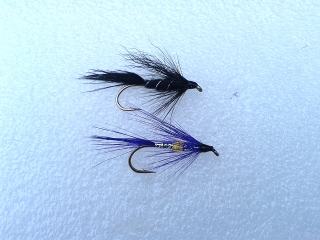 Sidusin mõne putuka ka . Kõigepealt paar uppuvat . Must on mul mõeldud küll kindlalt ainult paarile jõele , aga proovin seda kindlasti igas jões ja iga ilmaga. Teisel on värvid laenatud silver garrylt , vesi võiks olla siis veidi sogane või vähemalt normaalsest kõrgem, pilvealune kindlasti parem.
