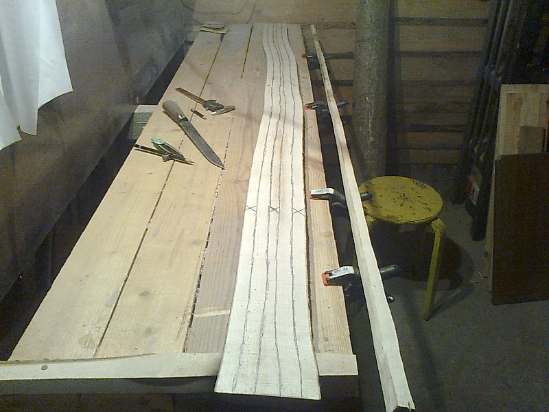 Keerasin teise puust ridva tooriku sirgeks...saab üks harjuseritv läti piirile. Ja siis võtsin uue laua ette , mõõtsin ja joonistasin ... krt kaks puust ritva saab