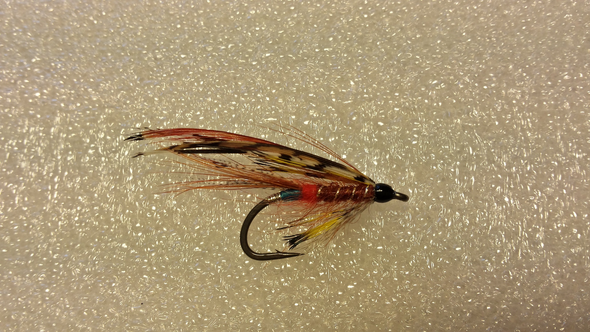Tiib: tippet, natukene kollast hane, kuld ja amherst faasan segatuna, crest vahele, tumedama faasani sabast mõni karv lisaks, tume mallard katteks ja crest peale, vahele peitsin ära paar karva sinist hane. Hall mallard külgedele. Korralikult kammitud ja harjatud.