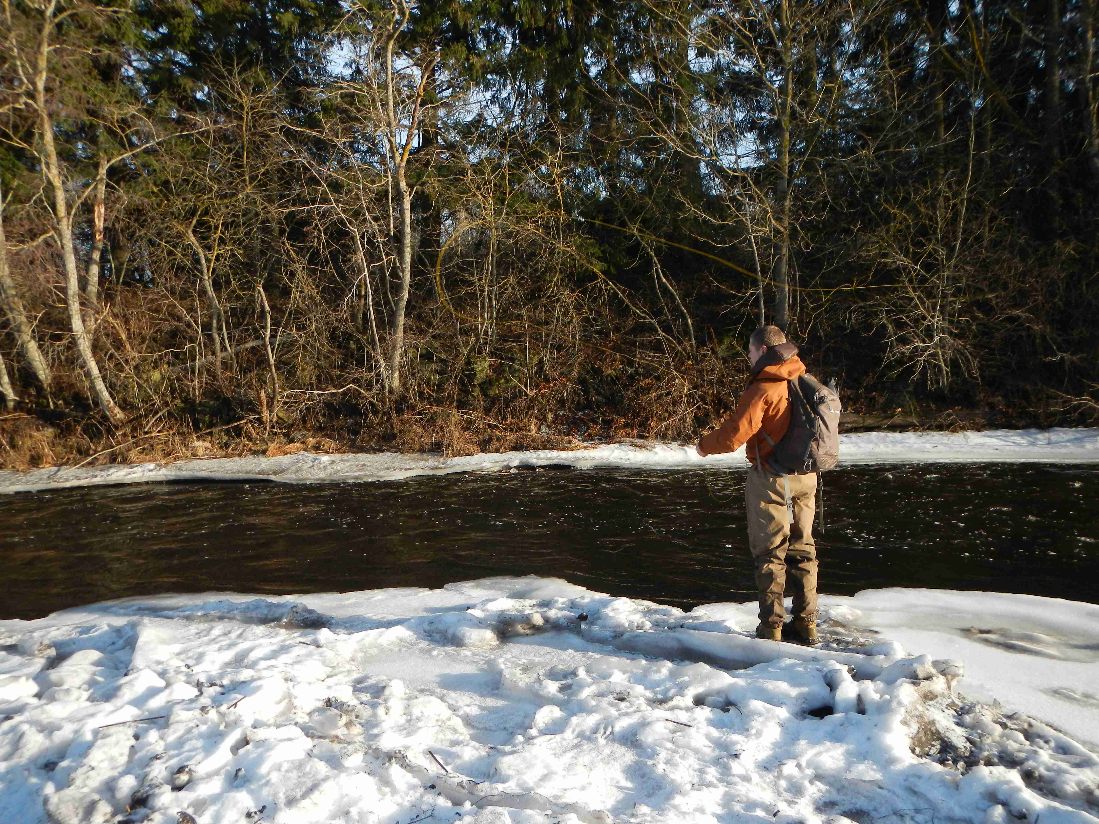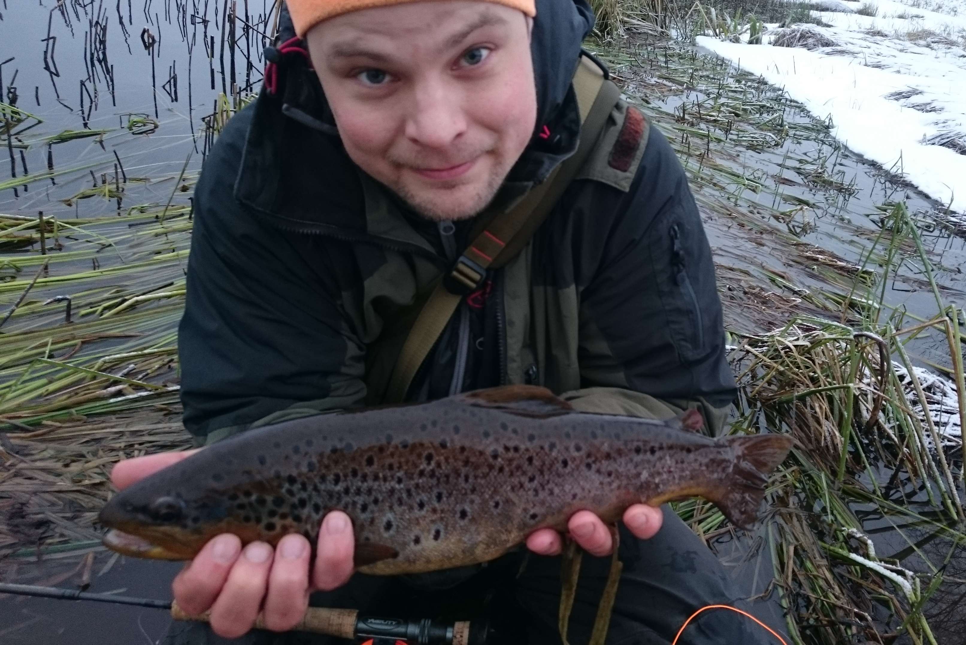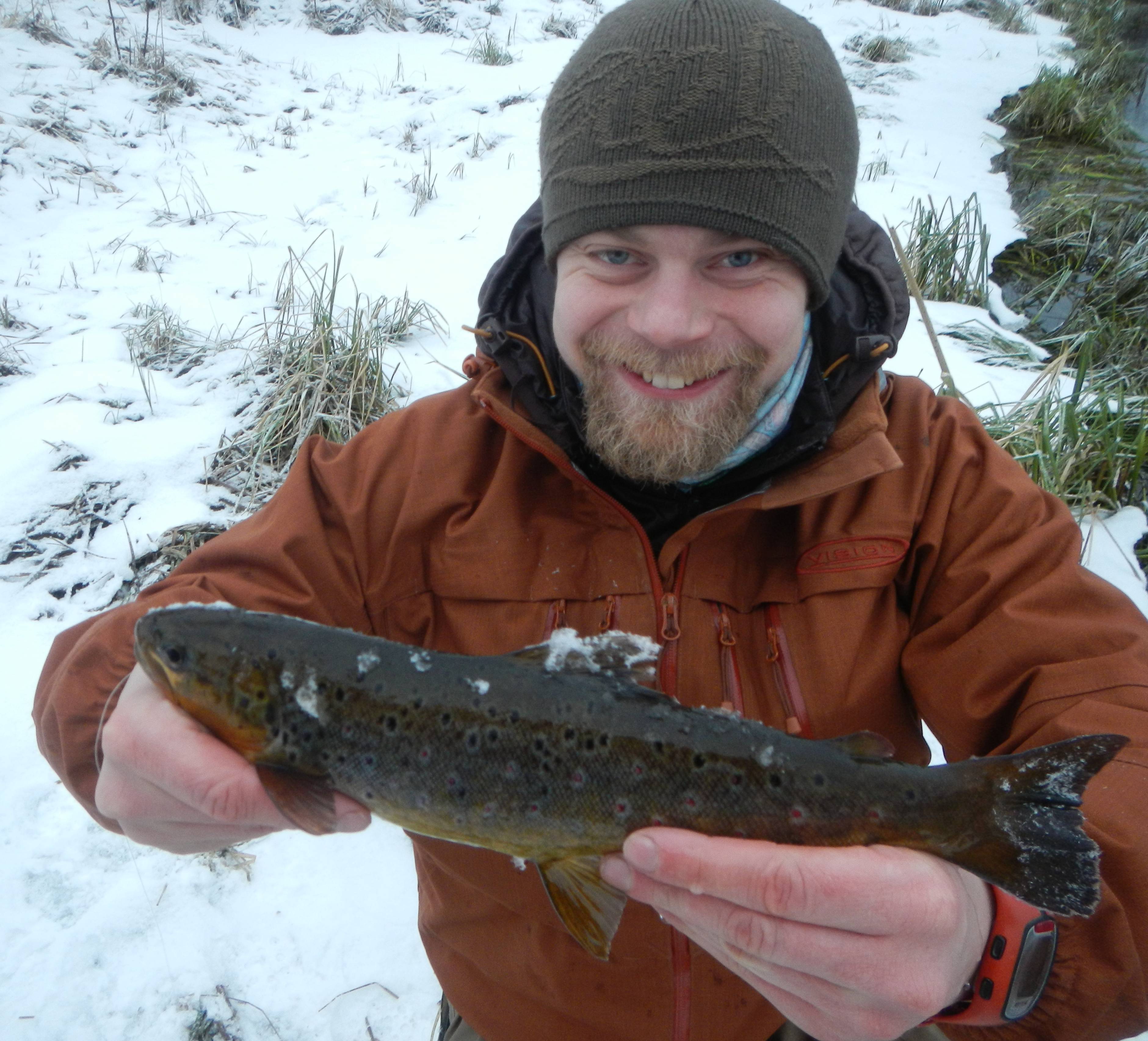 Käisin ka eile jõe ääres. On ikka mõnus see talvine püük. Jää, lumi ja ei ühtki putukat - välja arvatud see, mis lipsu otsas. Toimus omajagu. Kokku 14 forelli ja 2 haugi. Ühe kala tõin koju ka. Esimene kala oli umbes kell 8.00 ja viimane enne kolme . Lisaks kätte saadud kaladele oli võtte ja äraminekuid. Toimis beez WB ning kui juba toimunud piisavalt, siis sai ka üks mingi imelik rohekas otsa pandud :)