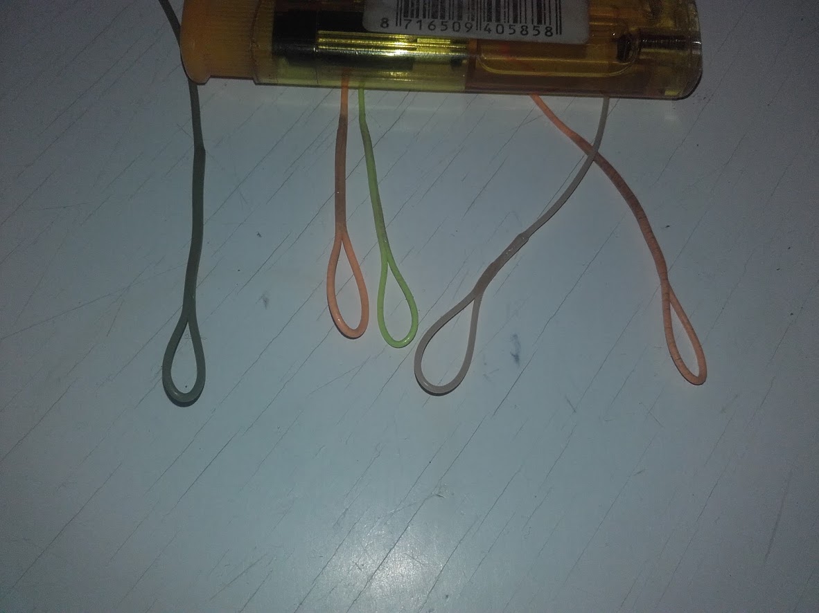 Mina teen termorüüzi ja gaasitinutuskolviga aasad. Pildil kaks nööri millel monofiilist core, natuke oli raskem teha aga tehtud sai.