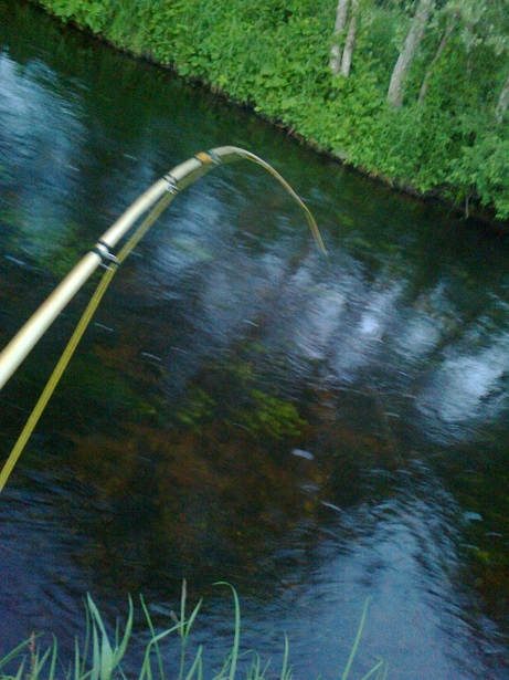 Olin 20 minutit kalastanud (päev alles noor, enne kella 11), kui silmasin veele vajunud puu all rõngast veel. Saatsin uppuva teele ja otsas. See 53 cm-ne ujub edasi ja tulevikus on (valivam)...