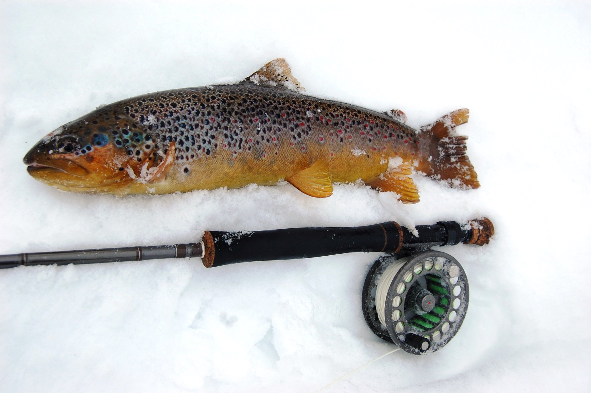 Aeglane mängitamine. Sügavuse tabamine. Mida vähem nööri puutusid, seda parem oli. Mõni päev õhkõrnad võtud - ainult nööri järgi sai aru, kätte ei jõudnud midagi. Teist aastat olid kaasas ka lõhekad. Ja muidugi WB-d üsna erinevates värvides. Samuti musta ja tõsiselt ka oranži. Käigus oli nii #6, aga enamus kordi siiski #8. Uppuvaid liidreid kasutasin väga vähe - sest veed olid madalad. Püüdsin nelja erinevat jõge. Teadsin, mis putukaid rohkem kasutan ja neid oli karbis ka piisavalt. Kuna jõed muutuvad igal aastal ja mõned on niikuinii risusemad, siis meenub eelmine aasta, kus kaotasin põhja 10 putukat päevaga. Püüan talvel reeglina jõelõike, kuhu sisse minek on välistatud. Kunagi öeldi mulle talvise püügi kohta, et see kui putukad jäävad põhja, näitab seda, et püüad õigelt sügavuselt. Sellel aastal ka ühel päeval oli esimese 50. meetriga 4 putukad läinud. Lipsuna muidu alla 0,24 talvel ei kasuta. Putukad suuremad ja toekamad ning nii mõnegi putuka suudab ikka risust päästa. Kusjuures enamus lõike ei hiilga oma läbipaistvuse poolest.