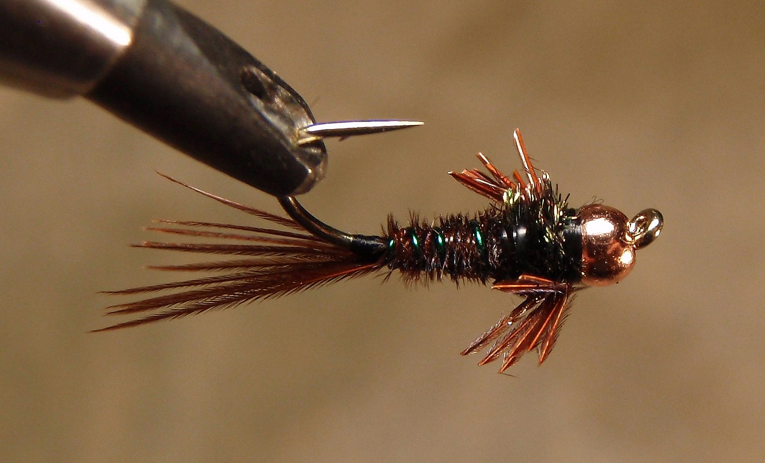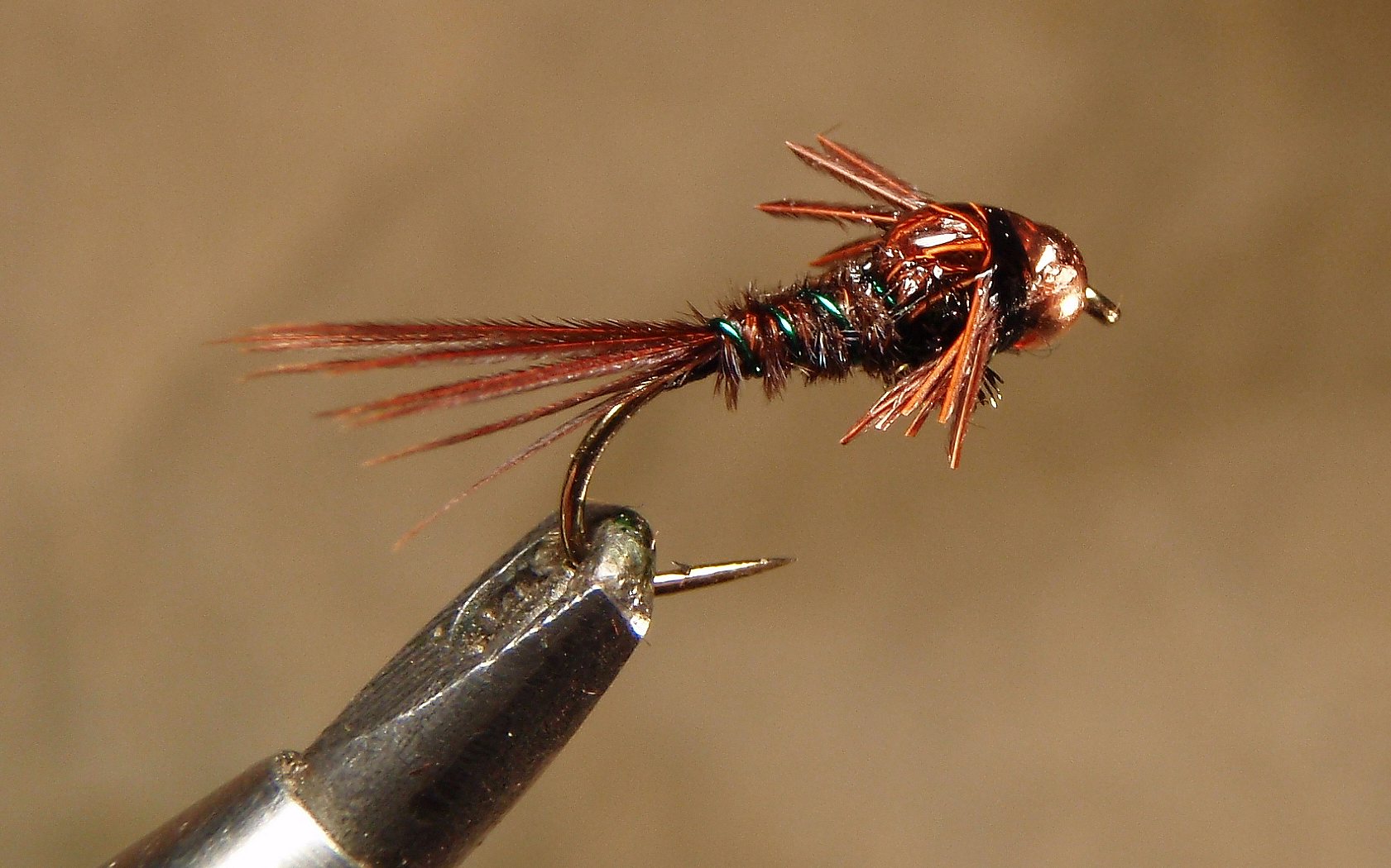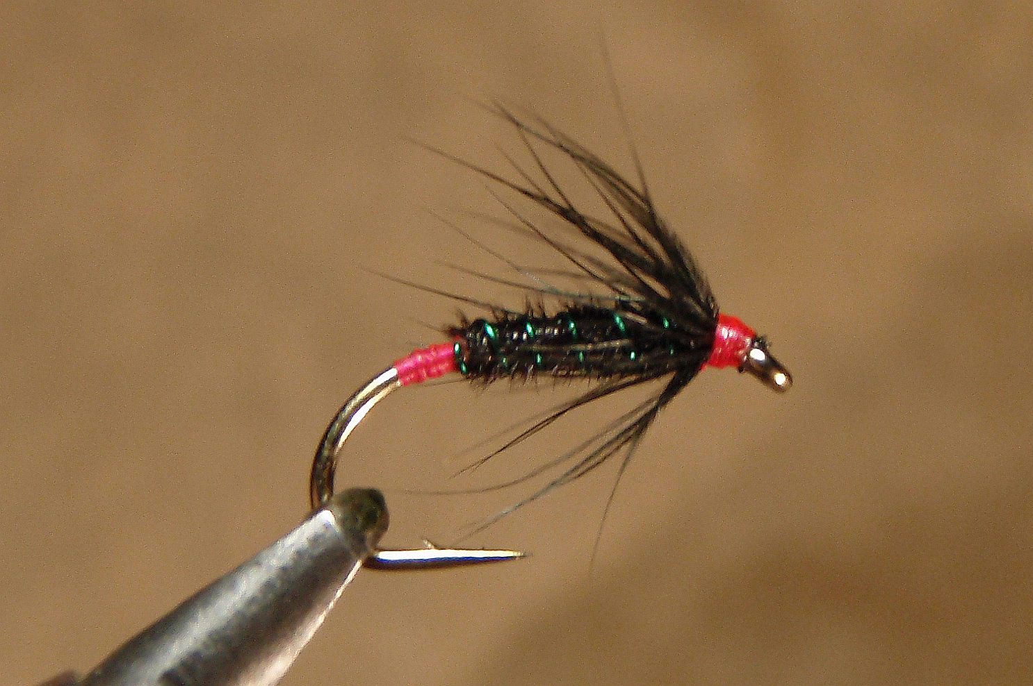 kuke abikaasa, ehk kana, sulg tipuga kinnitatud, siis tõmbad märgade näppudega fiibrid samasuunaliseks, paar keerdu sulega, kinnitad ja pärast tuled natuke niidiga peale, et õige nurga võtaks see hackel ja natuke ühtlustub ja korrastub. Kuna kanal on suleroots hästi õrn sellises mõõdus, mis läheb 12-14 kanti haakidele ja pead need paar pööret sulega umbes mm peale ära mahutama, siis üsna arusaadav, et alguses see asi ei suju kohe mitte ja minul olid ka need ülikoledad alguses, praegu on juba paranenud.
