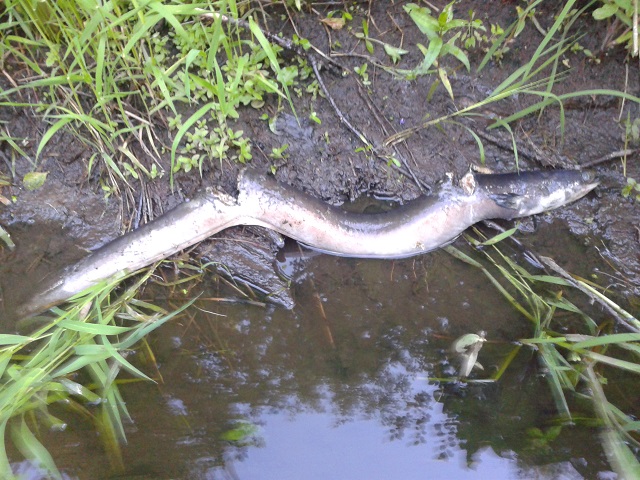 Jõgesid pidi kolades jääb aeg-ajalt silma ka midagi ebameeldivat.Viimane pilt ühe "rohelist" energiat tootva turbiini alt.