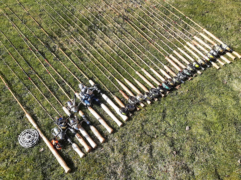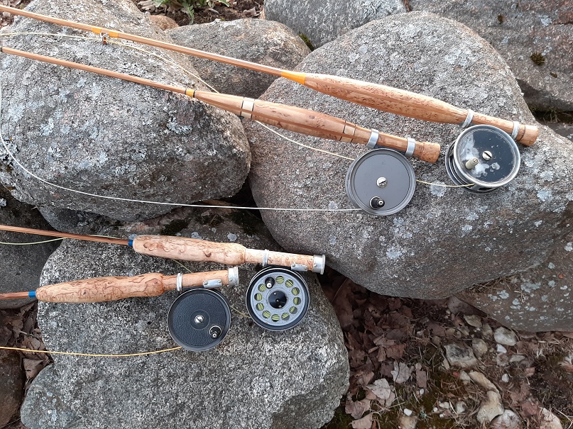 Aeg on teinud oma töö. Peale 40-t aastat metsatööd ei taha (ei saa) enam kahlata. Kui , siis ehk suvel väga sooja veega.Kevadised , sügisesed , talvised kahlamised jäävad ära.Meres kahlamine ei tule kõne allagi. Sellega seoses hööveldasin sel talvel ridvarivisse mõned spinnaridvad , centrepin ridva .Kus ja millal neid kasutan seda ei tea veel.Põhieesmärk on püsida kaldal , kuivas ja loodetavasti soojas.Kevadeks oli mu ridvarivi selline nagu pildil.Ehk saab hakkama ja põnevust jagub edaspidi veel kauaks.