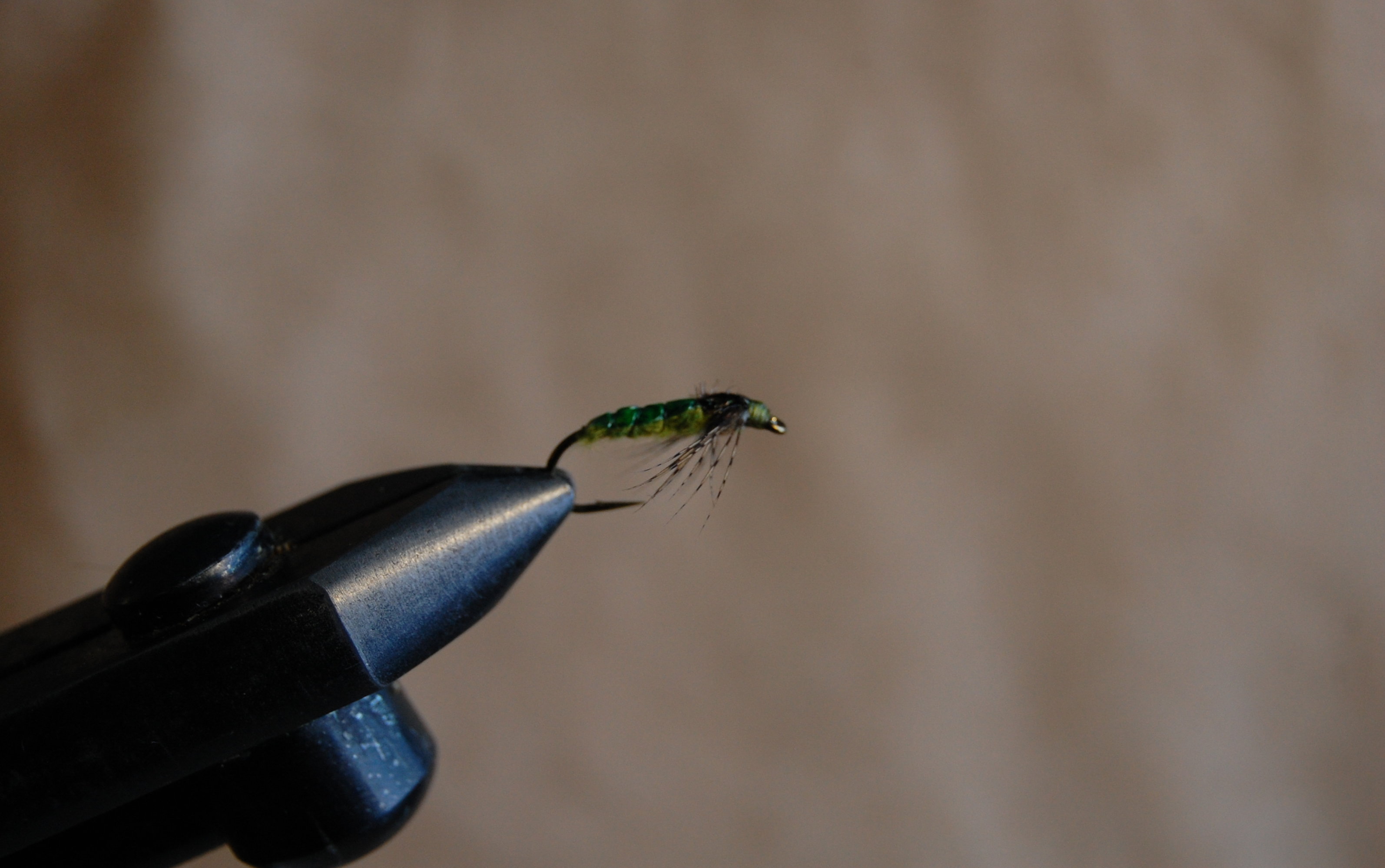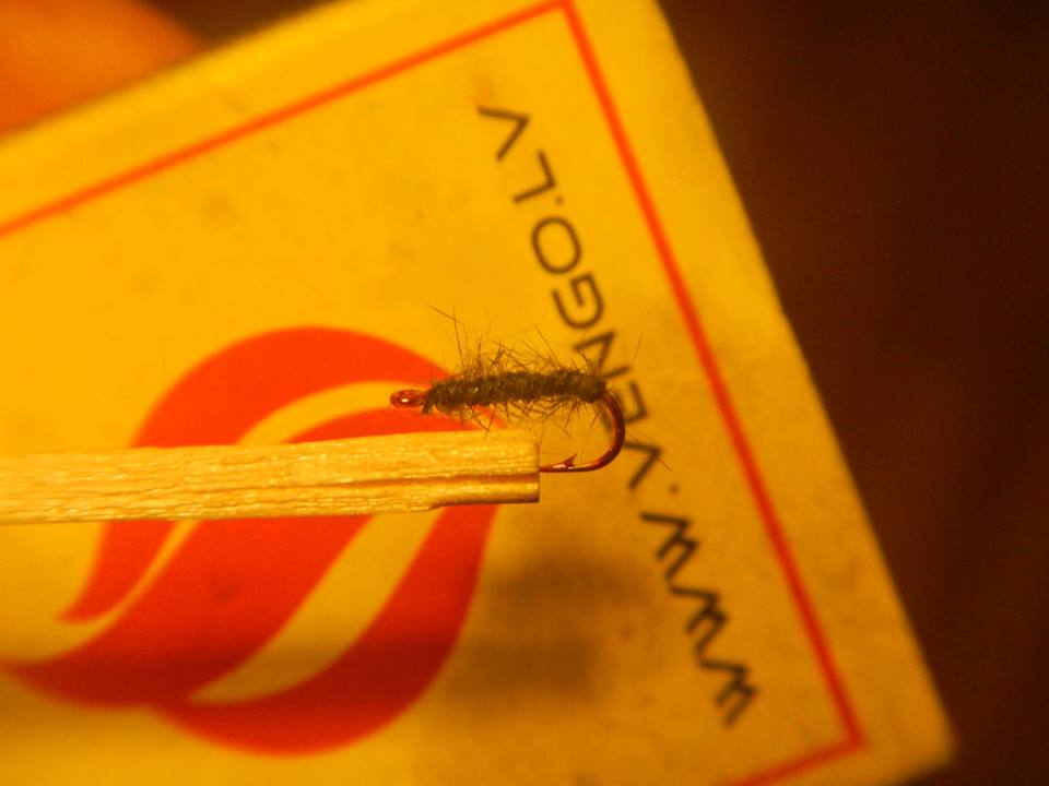 Rinnak - tumedam oliiv dubbing, mille peale seotud peacock herl kate