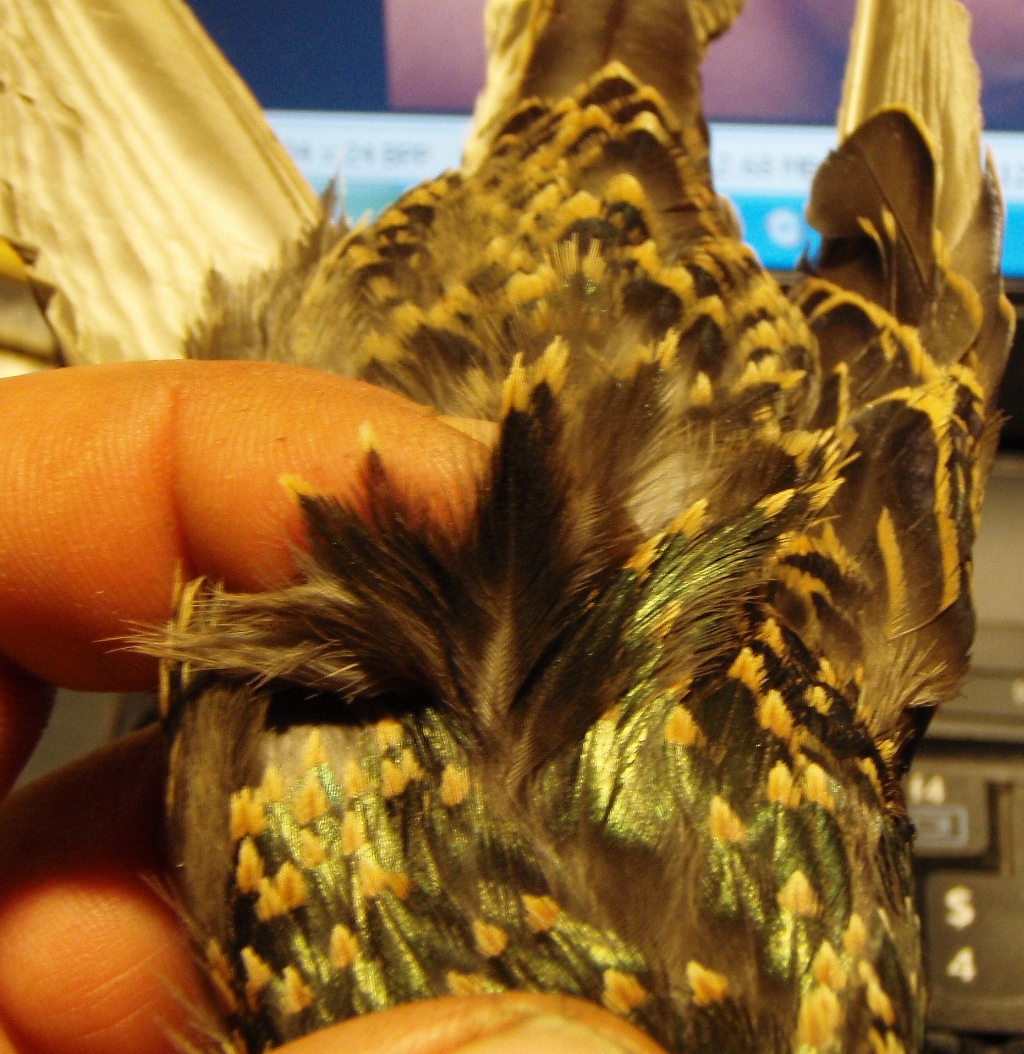Ülemisel putukal on emane faasan tiivapealne minisulg, sellel muidugi sule olemusest aru ei saa, kuna putukas ise on selline jänesemolukarvik. Hästi palju pisisulge on kuldnokal, kere selline 2 suitsupaki pikkune, a sulgi elulõpuni vist pisimustade tegemiseks, maksab umbes kümpa viimase pildi peal aimatav, et tegelikult kuldnoka must sulg rohelise pärlmutter läikega, pildid nagu alati sitad mul