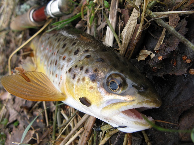 Käisin õhtupoole jõe ääres . Sadas ja läks külmaks , käed külmetasid nagu talvel . Forellinolgid olid tammertinseli peale tigedad.
